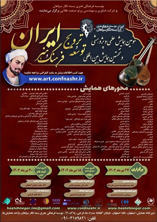 حوزه های تحت پوشش: هنر و علوم انسانی تاریخ برگزاری: ۲۲ تیر ۱۴۰۲محل برگزاری: استان اصفهان - شهر اصفهانوضعیت کنفرانس: در حال پذیرش مقالهپذیرش مقاله: ۱۴۰۲/۴/۱۸مهلت ثبت نام: ۱۴۰۲/۴/۲۰